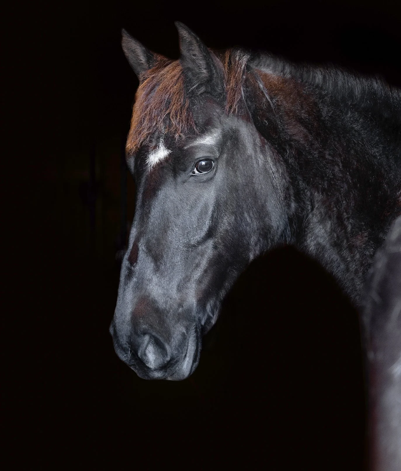 Jaina was a feral mare from Wyoming and was likely used in the breeding of bucking stock foals. In 2020, she was dumped, along with a herd of about twenty other draft and draft-cross mares, at an auction in Oklahoma. She was feral, but also had knowledge of people.